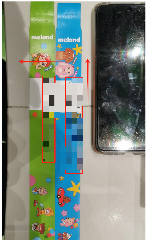 #### 国内手环二维码和文字内容`sell.ini`文件 ``` #手环打印内容位移参数 margin_left_point=180 margin_top_point=165 margin_top_row=22 ``` margin_left_point=180 #参数越小,内容越往左边,参考图片箭头 margin_top_row=22 #参数越小,内容越往上,参考图片箭头