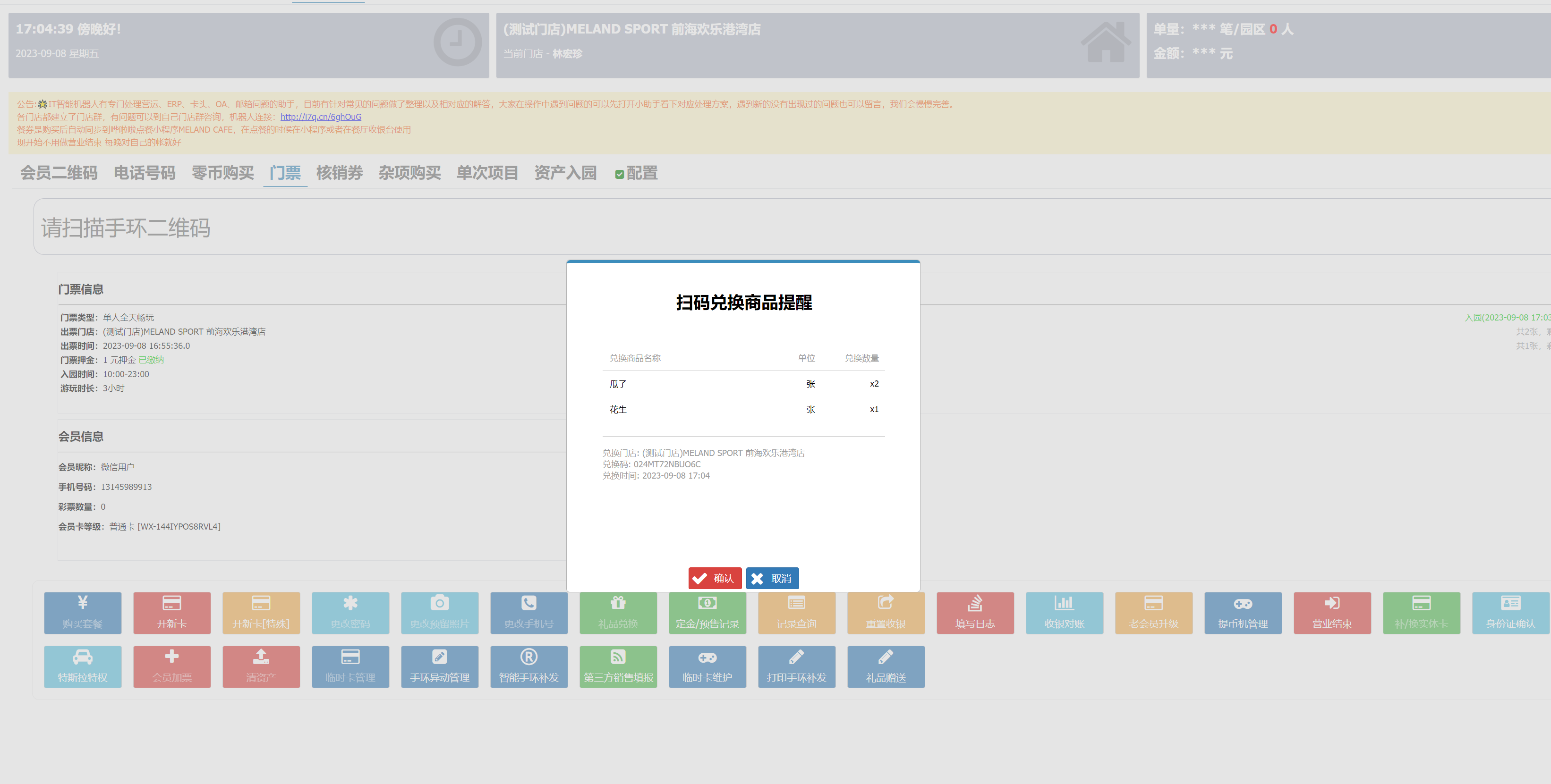 ### 客户拿手环到收银台扫描二维码,可兑换附加商品。点击“确认”即可兑换
