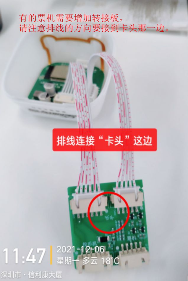 ### 卡头安装示意图 #### 1. 卡头的 3 个接线座  #### 2. 卡头到投币器连接线  #### 3. 卡头到票机连接线  #### 4. 卡头上壳和底座的连接线  #### 5. 有的票机需要增加转接板(小板),请注意小板上排线连接的方向  #### 6. 有的投币器需要加转接线  #### 7. 有早期的机台原装投币器,需要加这种转接线  #### 8. 卡头插上连接线后  #### 9. 卡头连接投币器  #### 10. 卡头连接彩票机  #### 11. 有的投币器插座不同,需要加转接线  #### 12. 选好位置后先安装卡头底座